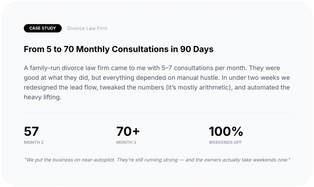 My methodology: 30% focus on each core pillar (Leads, Operations, Sales) + 10% pure grit. When the math is correct, the business functions autonomously.