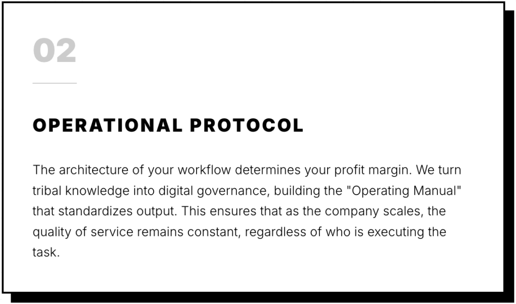 Velocity without direction is merely friction. If your presence is the only force keeping the machine running, you do not own a company; you own a high-stress job. My objective is to engineer the systems that allow your organization to function autonomously, converting the “daily grind” into a high-performance engine.