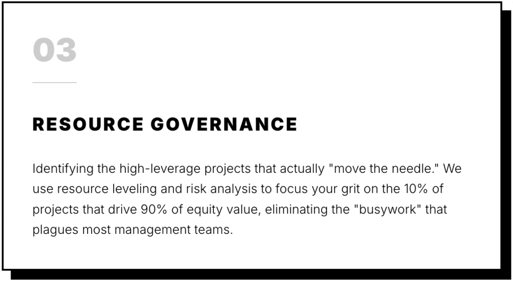 Scaling is not a sequence of spontaneous events. It is a portfolio of strictly governed projects. We apply high-stakes management to transform operational drag into predictable assets.